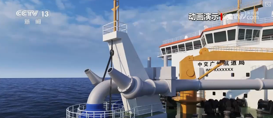 而藏在船舱里的我国自主研发的超大功率泥泵就像挖泥船的“心脏”,保障挖出的泥沙能高效抽吸到船上的泥舱内,并实现耙吸船12公里远距离泥沙吹排。“浚广”轮上首创的可调节双艏喷系统,就像两支巨大的高压喷枪,使泥沙喷排效率翻倍。